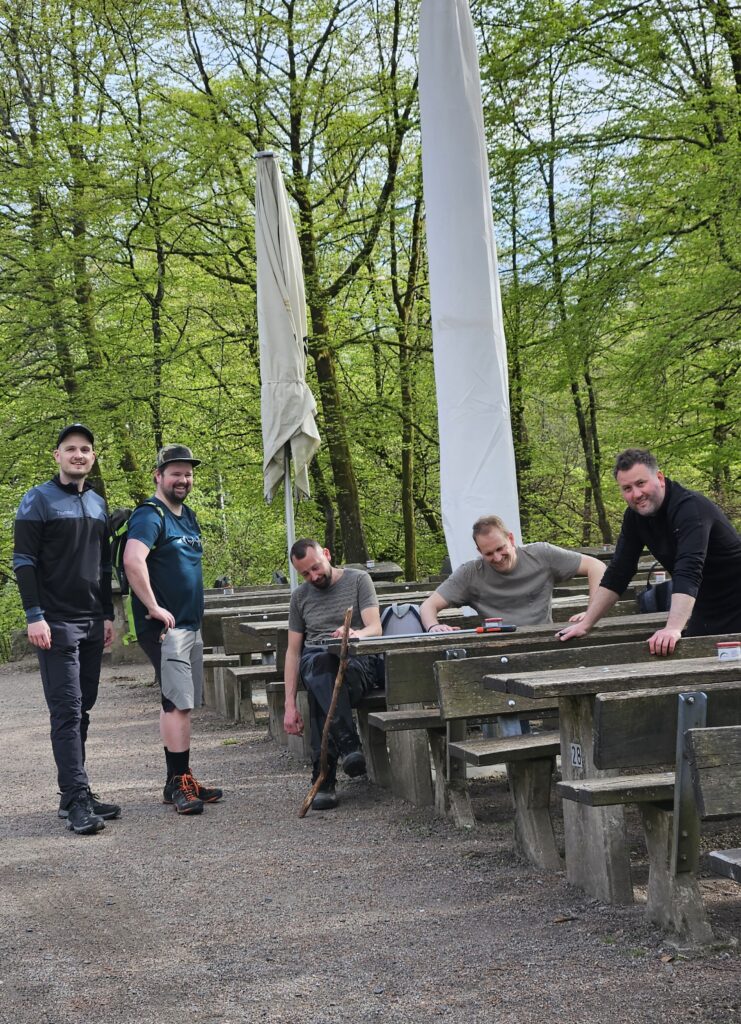 Nachdem die Saubermänner und -frauen vor der Gipfelraststätte die Ergebnisse ihrer Arbeit zusammengetragen hatten, gab es drinnen für sie auf Einladung des Dünsberg-Vereins von Pächter Thorsten Scherer eine herzhafte Stärkung.